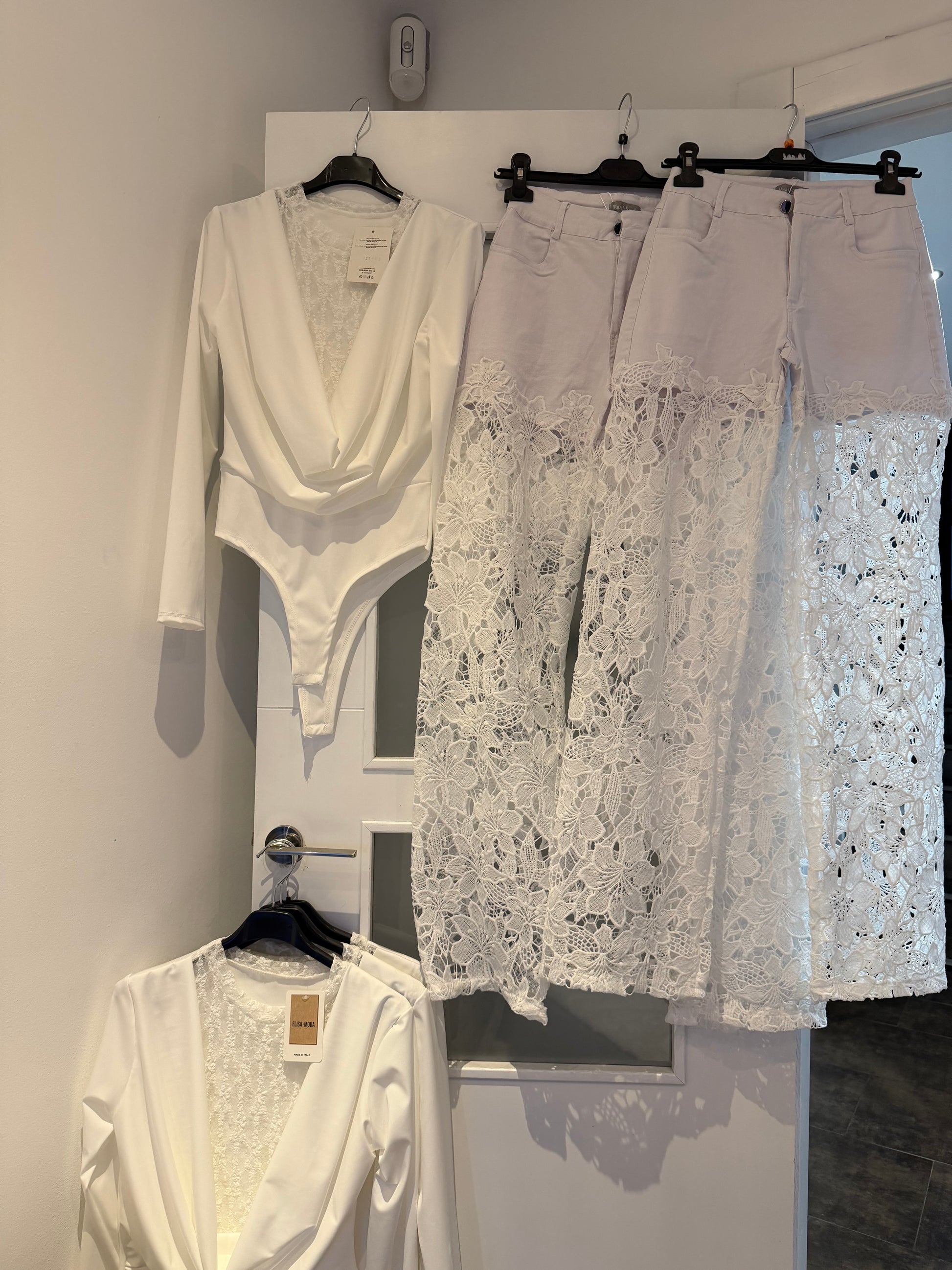Pantalón jeans bordado blanco