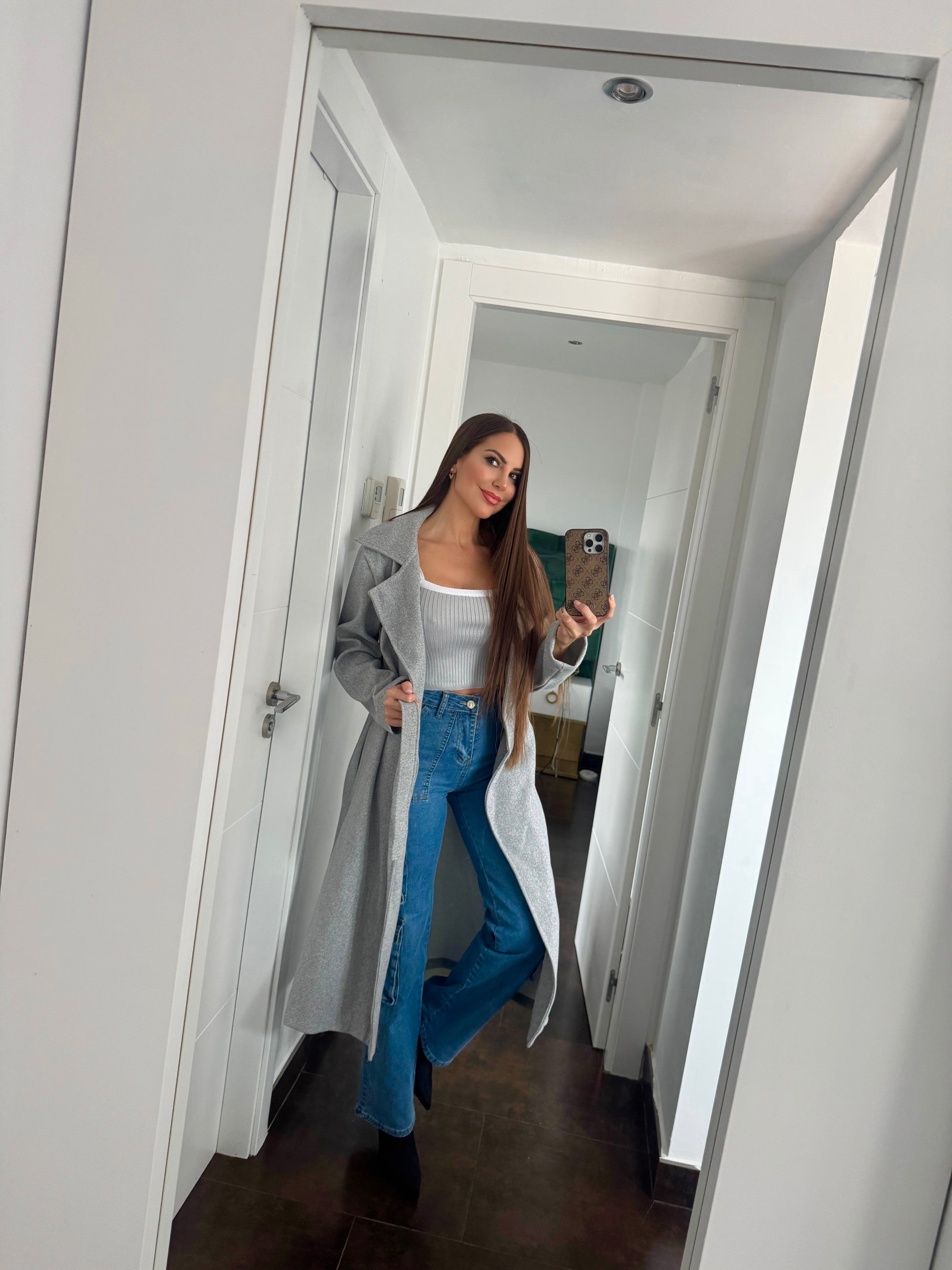 Top gris con blanco